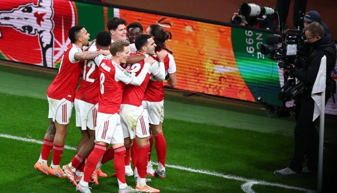 阿森纳排出433阵型。马杜埃凯、热苏斯和马丁内利的进攻三叉戟联袂出击。梅里诺、内尔高和埃泽组成3中场。廷贝尔、萨利巴、卡拉菲奥里和刘易斯-斯凯利3后卫首发出战。凯帕担任首发门将。萨卡、赖斯、厄德高和哲凯赖什坐在替补席待命。