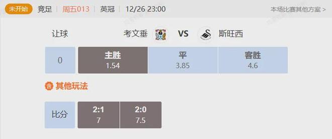 竞足 周五013英冠考文垂VS斯旺西