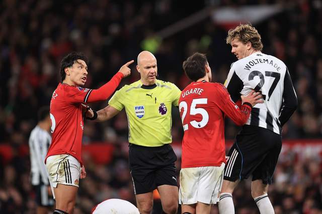 第62分钟,纽卡斯尔角球攻势,舍尔后点抽射击中利桑德罗-马丁内斯,随后示意对方手球。不过裁判根据VAR提示,判定是反弹球,因此没有判罚点球。
