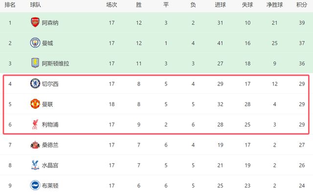 此役拿到3分之后,曼联排名已经升到第五,他们的积分已经追平第四的切尔西,仅仅因为净胜球少而位居对手之后。对于曼联来讲,如今欧冠席位已经近在咫尺,他们接下来只要继续努力,随时有机会进入前四。