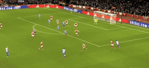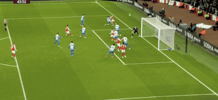 第44分钟,阿森纳连续围攻布莱顿的球门,苏维门迪脚后跟射门,被维尔布鲁根奋力挡出。