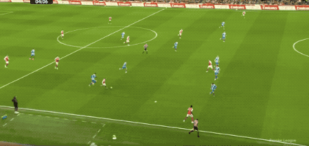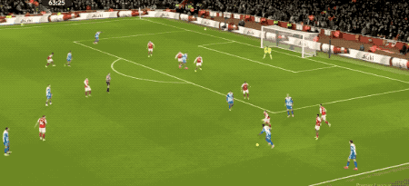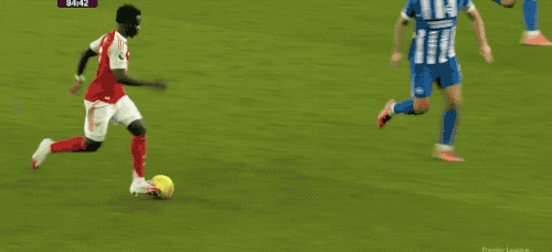 第30分钟,因卡皮耶送出妙传,萨卡停球不太舒服,但迅速调整后依旧强行进入禁区传球,防守球员将球解围。