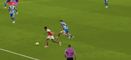 第14分钟,布莱顿的传球被抢断,萨卡送出助攻,厄德高打近角得手,枪手早早取得领先。