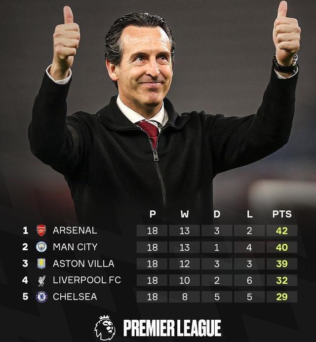 此战过后,维拉18轮积39分高居英超第3,距离榜首阿森纳仅差3分,和曼城只差1分,争冠势头正盛。