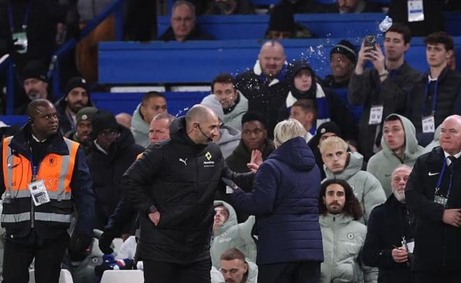据报道,在切尔西主场不敌维拉比赛结束哨声响起后不久,有球迷向维拉的替补席区域投掷了一个瓶子,溅湿了球员和工作人员。
