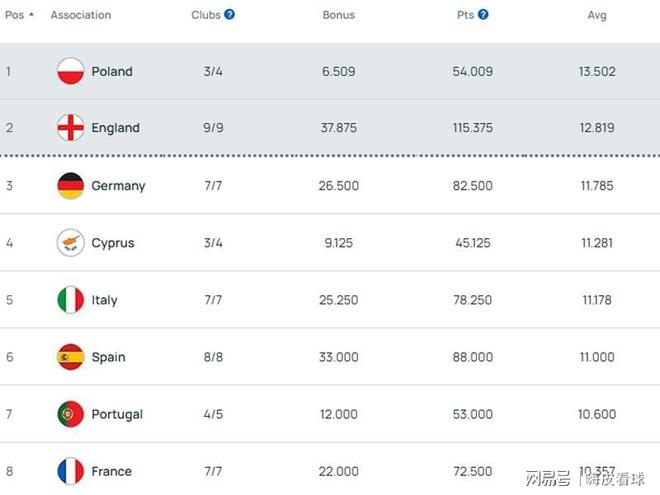 根据欧足联最新的积分,波兰联赛和英超暂时排在前两名,德甲、意甲、西甲和法甲纷纷进入前八。波兰剩下参赛的三支球队全部都在欧协联,一队直通16强,两队需要参加附加赛,相信随着赛事的深入,加上欧冠权重较大,波兰的排名很快会下降。