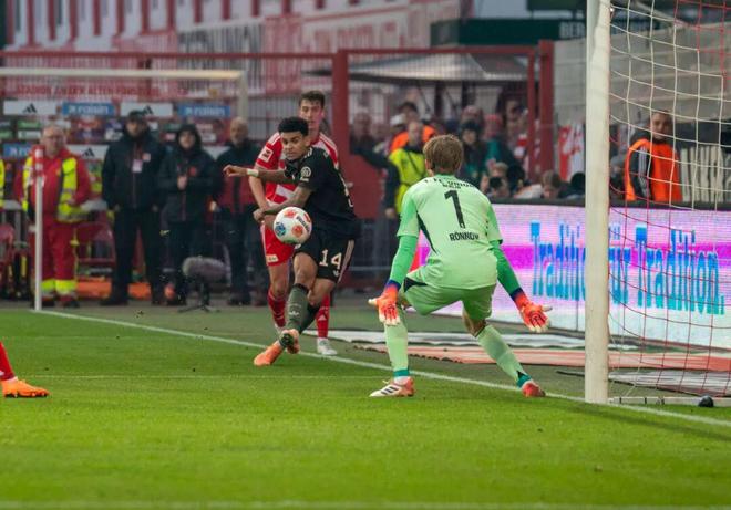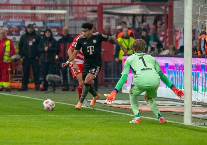 但本文想要特别介绍的这粒精彩进球并不在2025年国际足联普斯卡什奖的候选名单中。本赛季德甲第10轮,拜仁客场对阵柏林联,“南大王”此前已经豪取联赛9连胜,却未想到在这里2比2战平对手,终止了连胜步伐。但此役拜仁却收获了一粒足以参评赛季最佳的进球——比赛第38分钟,拜仁传中被禁区内的柏林联后卫头球解围,迪亚斯在禁区线附近得球后分给身旁的斯塔尼希奇,克罗地亚后卫随后直塞的力度稍大,出脚后他便抱头懊恼。但路易斯·迪亚斯快速追到底线附近倒地将球救下,随后过掉上抢的对手,几乎是在“零角度”右脚抽射直挂球门远端上角入网。眼见“失误”变“助攻”,双手刚放下的斯塔尼希奇再次抱头,对队友在自己眼前的精彩表演表示难以置信。路易斯·迪亚斯本赛季以7000万欧元转会拜仁,前21场各项赛事打进12球,表现相当给力。