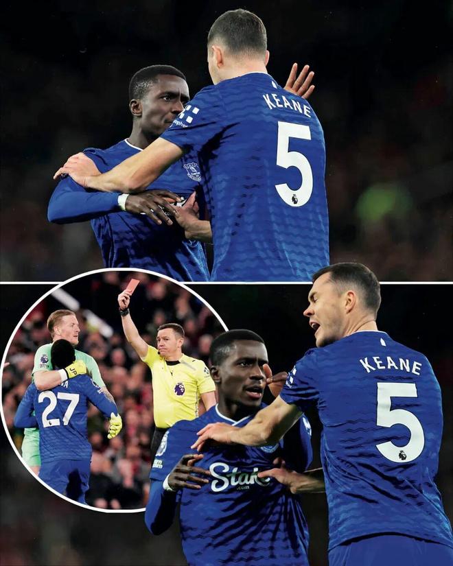 20年后,相似的场面竟然重现英超——本赛季英超第12轮,曼联主场对阵埃弗顿。巧合的是,对阵双方的实时排名和20年前一样也是第10和第11位。比赛开场才13分钟,埃弗顿球员伊德里萨·盖伊和队友迈克尔·基恩因传球爆发矛盾,二人迅速从口角上升至肢体冲突,前者当众给了队友一巴掌。位于附近的皮克福德赶忙上前拉架,但盖伊仍怒气未消反应激烈,最终被红牌逐出场外。这次内讧虽不及20年前那次互殴“火爆”,但在英超比赛进行当中出现如此场面也是颇为罕见。毕竟这可是面向全世界的现场直播啊。然而,尽管埃弗顿早早少打一人,却仍凭借霍尔的进球最终1比0战胜了曼联队。