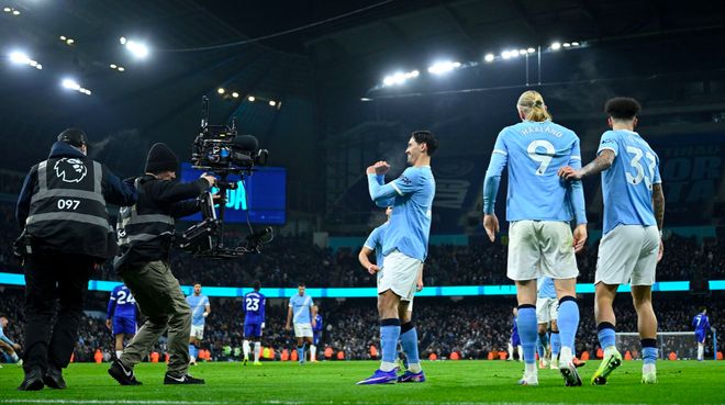 曼城首发:25-多纳鲁马、3-鲁本·迪亚斯(81’6-阿克)、24-格瓦迪奥尔(51’45-胡桑诺夫)、33-奥赖利、4-赖因德斯(70’11-多库)、16-罗德里、20-B席、27-努内斯、9-哈兰德、10-谢尔基、47-福登。
