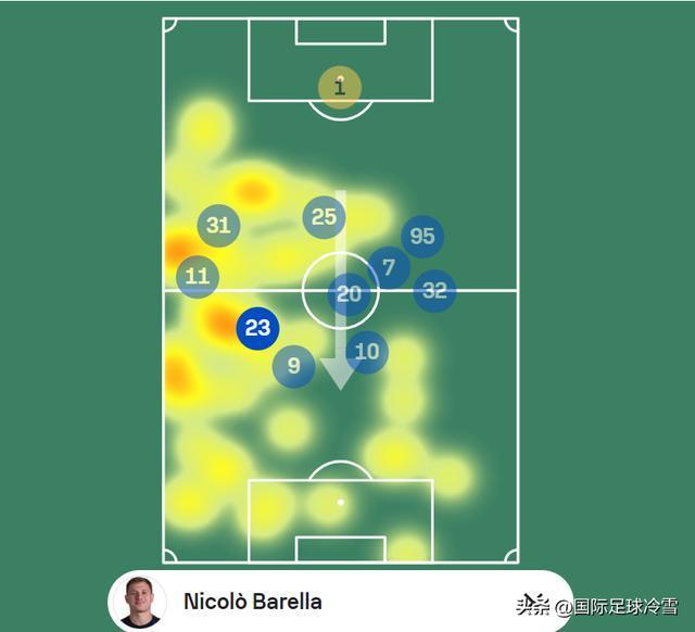 这一战泽林斯基的位置其实相对比较靠后,拼抢力度也很大(他头上脚下有7次一对一对抗,这远超他日常的场次),但真正出现机会后,泽林一锤定音的能力,确实在国米这批中场球员中属于顶尖水平。