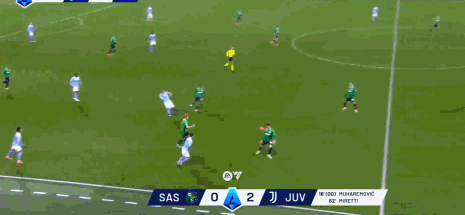 第61分钟,尤文右路反击,连续的传递,戴维策应往中路一撩,米雷蒂后排跟进拿球高速推进,甩开回防球员突入禁区获得半单刀良机,米雷蒂调整好脚步右脚大力推射,皮球应声入网,尤文2:0领先。仅仅过了1分钟,2球落后的萨索洛还送上大礼,伊泽斯回传像是“助攻”一般,戴维高速插上断球突入禁区获得单刀良机,面对出击的穆里奇,戴维一个横向变向轻松过掉,随后打空门得手,尤文1分钟连进2球,3:0锁定胜局。