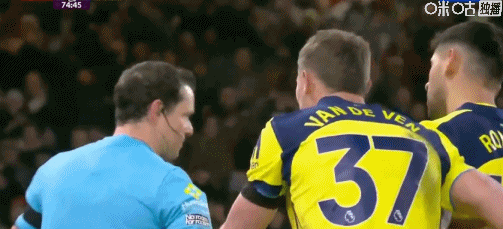 第75分钟,范德芬不满判罚,裁判出示黄牌