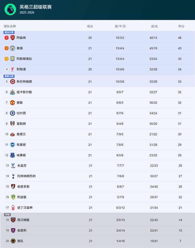 北京时间1月8日凌晨,英超第21轮已经结束的比赛中,曼市双雄双双收获平局。排名英超联赛积分榜第2的曼城主场1-1战平布莱顿,刚刚炒掉主教练阿莫林的曼联客场被恩波利2-2逼平。