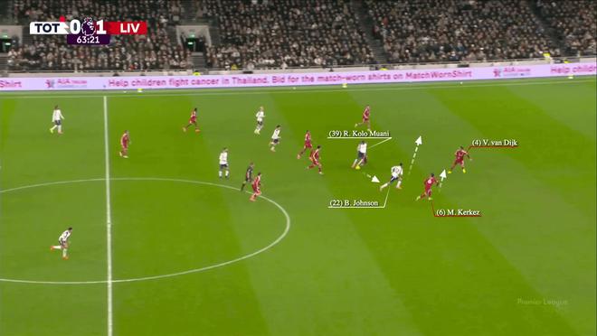 随后本坦库尔找到穆阿尼,后者转身摆脱科纳特并得以带球向前,约翰逊的跑动则带开了维吉尔-范戴克和米洛斯-凯尔凯兹,清出了一条通道。