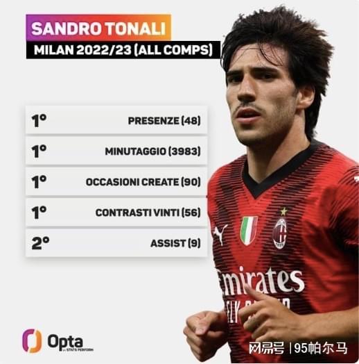 托纳利并不是无缘无故地成为纽卡斯尔的偶像或者切尔西的猎物,在登陆英超之前的一个赛季中,他为AC米兰在各项赛事中出场48次,累计登场3983分钟,创造机会90次,成功抢断56次,三项数据均是AC米兰队内的NO.1,如此托纳利成为意大利球员历史转会标王,是建立在实力使然的基础上,并不是财大气粗的纽卡斯尔花钱不眨眼。