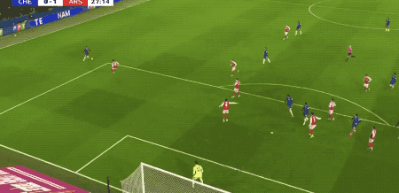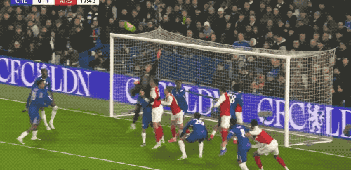 第84分钟,切尔西球员内托开出角球,阿森纳门前一片混乱,凯帕出击倒地,加纳乔凌空射门,梅开二度。2-3。