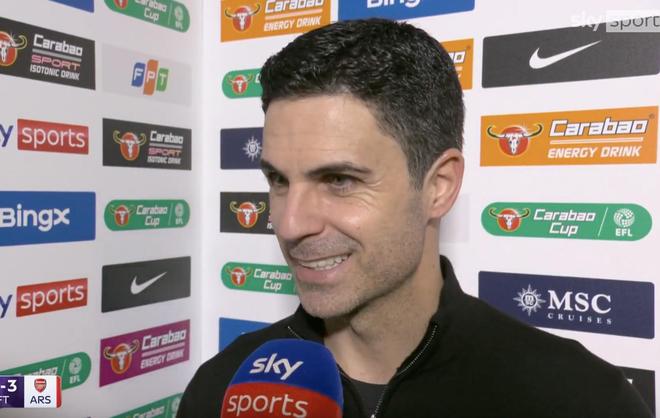 英联杯半决赛首回合,阿森纳客场3-2击败切尔西,赛后,枪手主帅阿尔特塔接受了天空体育的采访。