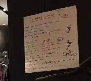 细心的枪迷很快注意到,在他家中健身房的墙上挂着一块“愿景板”,上面贴满了激励自己的标语,帮助他不断迈向成功。这块愿景板上写着诸如“世界最佳后卫”“世界最佳防线”等字样,同时他还特别标注了“迈向下一个层级(to next level)”。