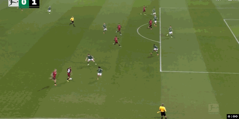 仅仅2分钟后,不莱梅中后场左侧斜长传快速反击,斯赫米德中路跟进突入禁区获得单刀机会,稍微慢半拍的情况下,面对出击的门将考阿,斯赫米德转身往右边做球,后排插上的米洛舍维奇迎球推射空门得手,不莱梅3:2反超了比分。从两度领先到落后,法兰克福没有放弃,补时最后1分钟,法兰克福右路压上,埃奇古亚卜强行突破下底,抢在皮球出底线之前将球兜回来,克瑙夫小禁区前沿抢点凌空推射,皮球直入球门右下死角,法兰克福3:3压哨绝平不莱梅。