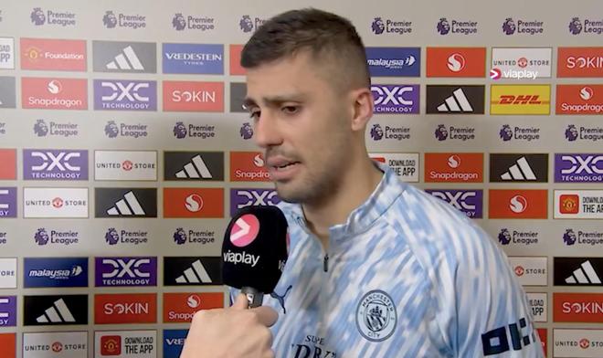 英超第22轮,曼城客场0-2不敌曼联,曼城中场罗德里赛后接受了Viaplay Fotball的采访。