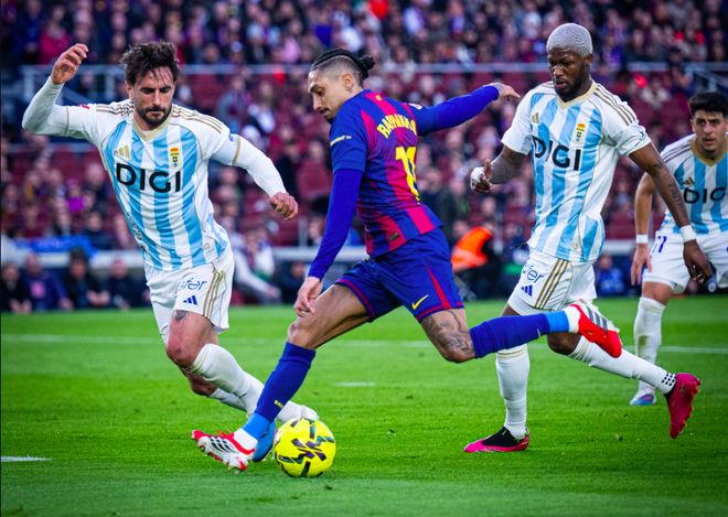 上半场两队互交白卷,第52分钟,奥维耶多后卫出现失误,亚马尔抢断,之后又送出助攻,奥尔莫低射破门。