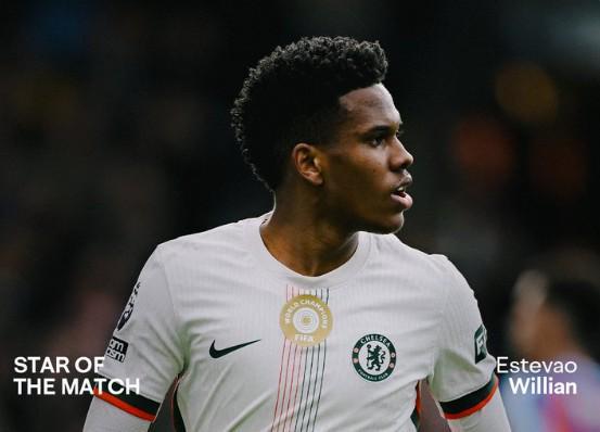 在昨天晚上进行的英超第23轮比赛中,切尔西客场3-1击败水晶宫,赛后,埃斯特旺被切尔西官方评为本场比赛队内最佳球员。