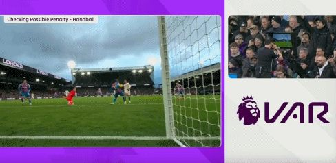 周日,在曼城对狼队一战担任视频助理裁判的达伦-英格兰,担任水晶宫对切尔西一战的主裁判。同样面对禁区内的手球动作,达伦-英格兰做出了不同的判罚。