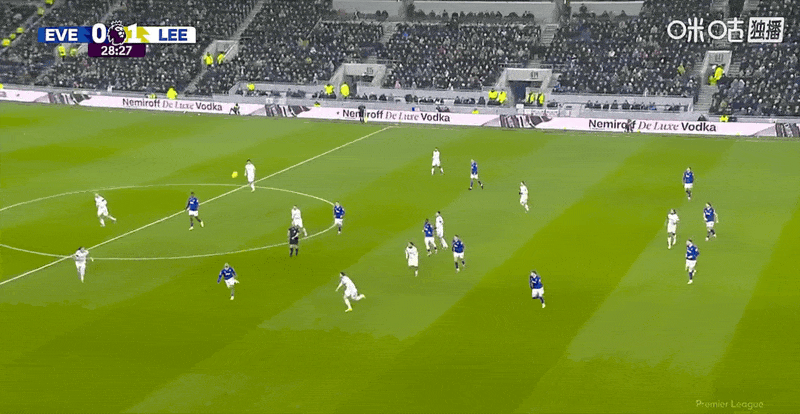 第27分钟,利兹联中前场右侧高位逼抢断球反击,斯塔赫根博格来个撞墙配合后下底倒三角传中,阿伦森前点一让,他身后后排跟进的贾斯汀小禁区前沿迎球大力推射半空门得手,利兹联1:0首开纪录。第34分钟,利兹联右路快攻,阿伦森禁区前沿策应直塞,博格跟进突入禁区倒三角横传门前,勒温小禁区内抢点超近距离推射,BOOM的一声皮球被门柱挡出,埃弗顿逃过一劫。