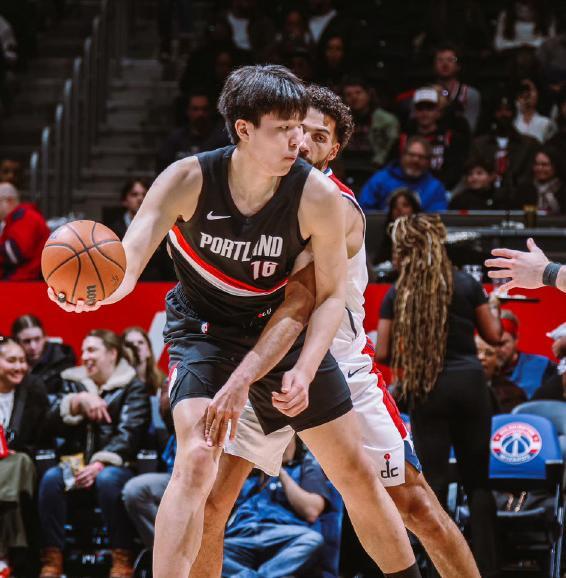 1月28日,开拓者111比115不敌奇才,本场比赛杨瀚森出战11分钟,全场6投2中,贡献6分5篮板,正负值+11,是全队最高。